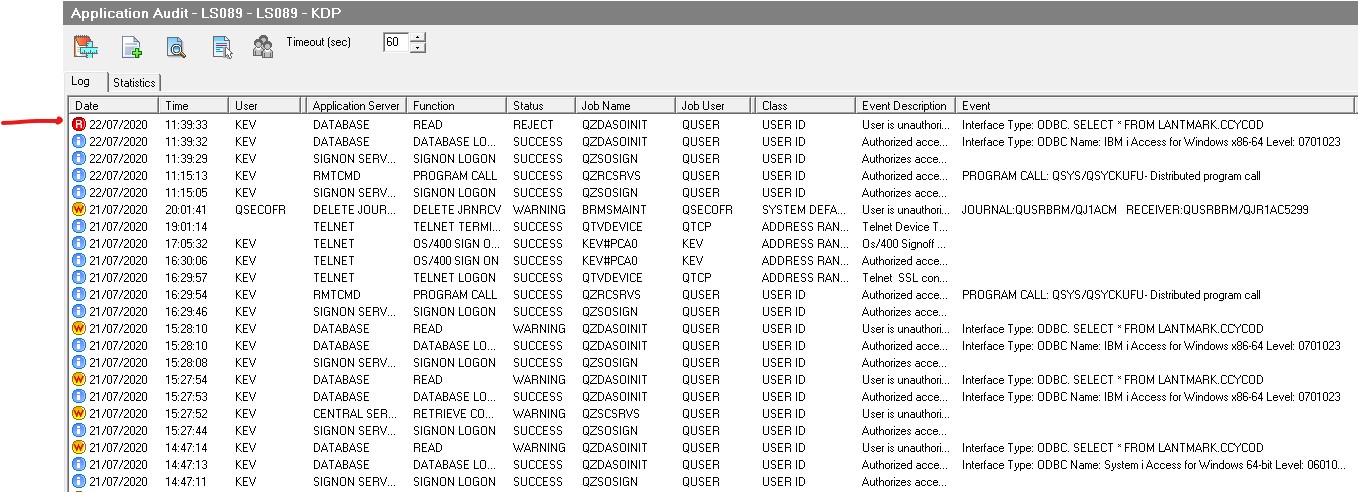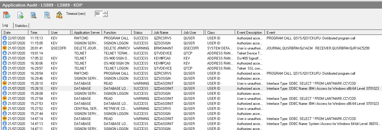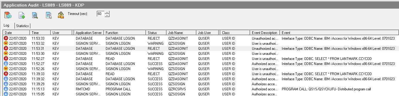 Using the application Audit Module the security team can easily spot access via ODBC.