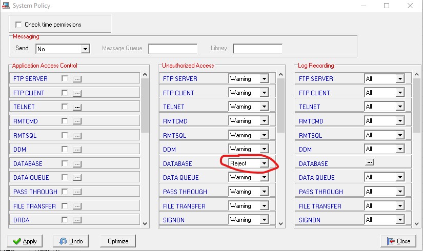 I can also reject access to the database logon by unselecting the ODBC logon parameter and deny access to the signon server.
