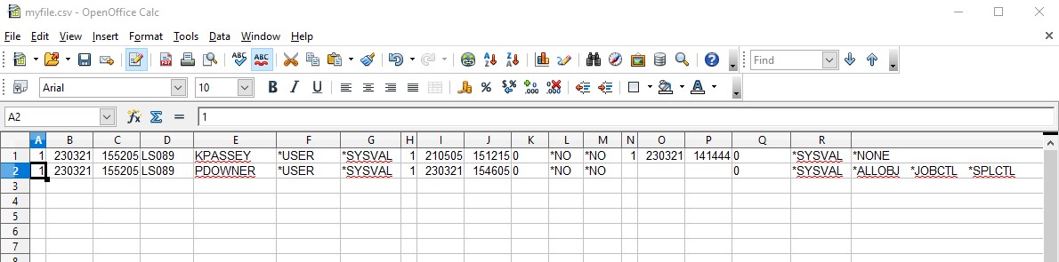 I've then run a command that copies that data from that database file into a csv file in my default folder in the IFS. So far so good - I'm only using what I am authorized to use. Then I upload that newly created text file to my PC and open it with Open office calc.
